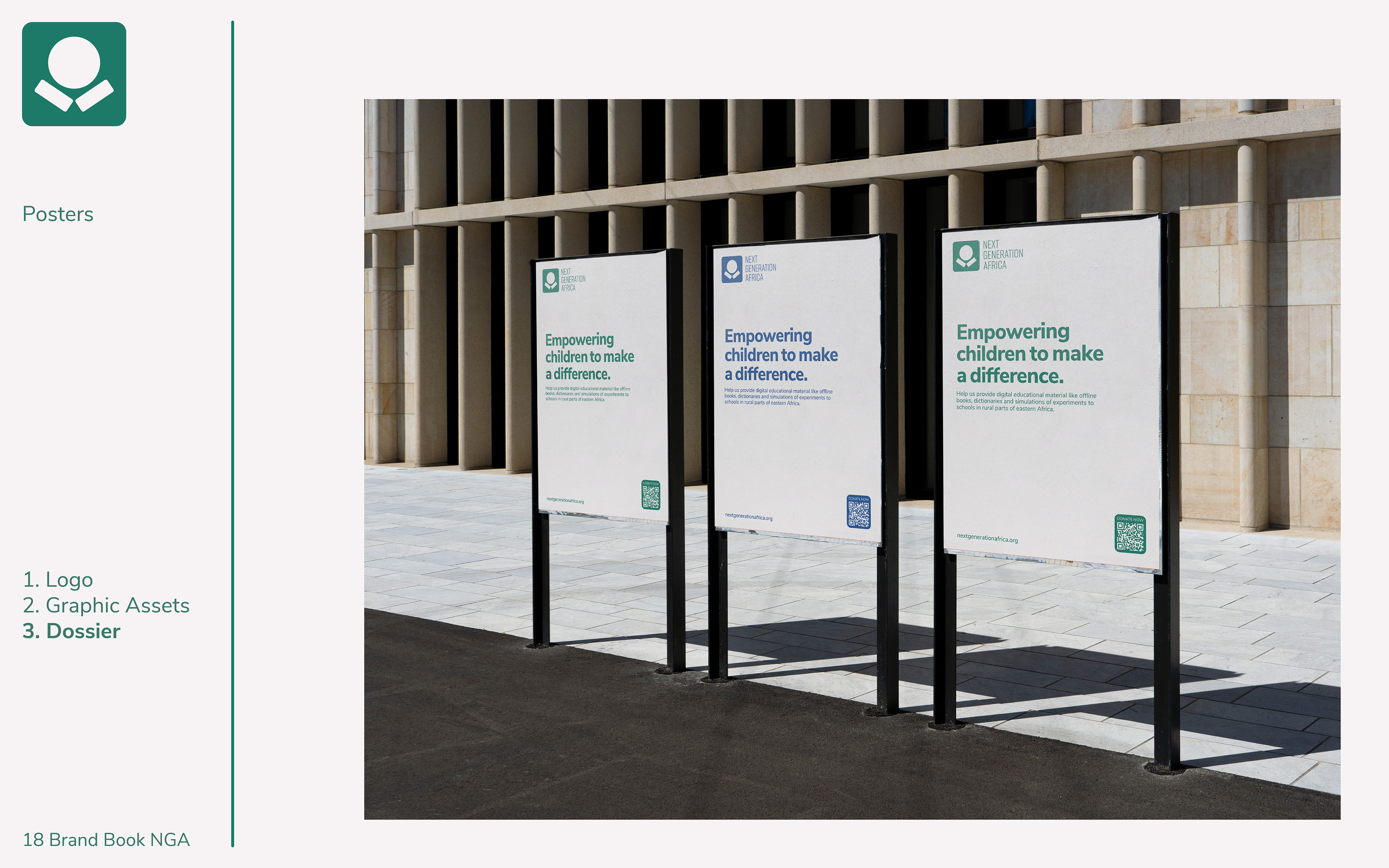 I created a brand book and an animation for a charitable organisation called Next Generation Africa. I was instructed by by two Domestika courses. One of them guided me through the process of creating a branding and a brand book and the other one taught the basics of After Effects to create animated typography.